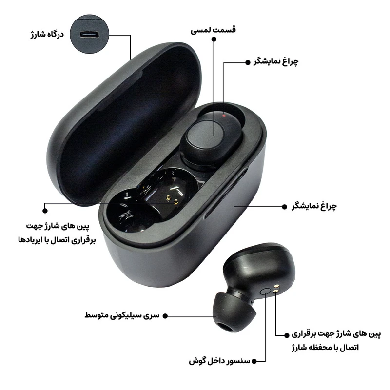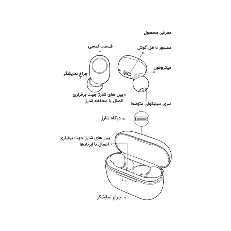دفترچه راهنما, دو جفت سری سیلیکونی اضافی, کابل شارژ Type-C