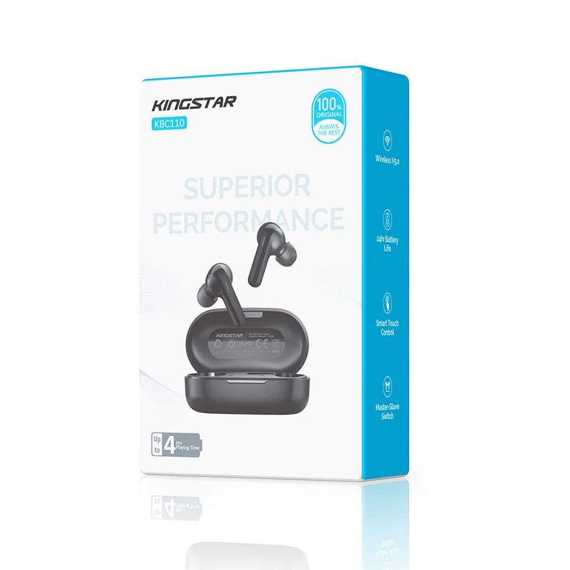 ایرباد آهنربایی کینگ استار مدل KBC110 علاوه بر طراحی شیک و زیبا و کیفیت صدایی عالی دارای قابلیت اسمارت تاچ میباشد. محدوده عملکرد این ایرباد تا 10 متر است بنابراین با این مقدار فاصله از گوشیتان به راحتی میتوانید با آن کار کنید؛ موزیک گوش کنید و یا صحبت کنید.این محصول دارای ظرفیت 4 ساعته جهت مکالمه و 105 ساعته درحالت استندبای میباشد. همچنین برای استفاده از این محصول نیاز به داشتن نسخه بلوتوث 5 است. از دیگر پارامترهای قابل توجه برای استفاده از ایربادز بیسیم کینگ استار مدل KBC110، تعداد دفعات شارژ گوشی هاست که 6بار انجام میپذیرد و هربار به میزان 1.5 ساعت جهت شارژ کامل آنها زمان نیاز خواهد داشت. مقدار ظرفیت جعبه شارژ ایربادز نیز 600 میلی آمپر و زمان شارژ آن نیز 2.5 ساعت میباشد. دفترچه راهنما به همراه کابل شارژ تایپ سی و دو جفت سری سیلیکونی از اقلام همراه این محصول به شمار میروند.