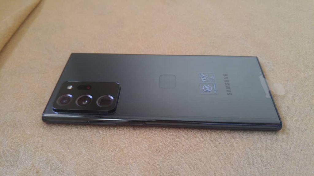 گوشیهای سری نوت سامسونگ، طراحی خاص خود را دارند که آنها را از گوشیهای سری S جدا میکند. همانطور که انتظار میرفت گوشی Note 20 Ultra هم از قاعده طراحی گوشیهای سری نوت پیروی کرده است؛ برای این گوشی لبههای تیز در نظر گرفتهشده است. این در حالی است که لبههای گوشی گلکسی S20 Ultra کاملا گرد طراحی شده است. با قرار دادن گوشی Note 20 Ultra در کنار گوشی Note 10 Plus متوجه بهبودهای آن در طراحی خواهید شد؛ حاشیه صفحهنمایش تا لبه پایین گوشی کمتر شده و حفره سلفی هم کمی کوچکتر شده است. لبههای صفحهنمایش S20 Ultra همچنان با کمی انحنا همراه شده است. برای قاب جلویی پوشش گوریلاگلس Victus در نظر گرفته شده است که در واقع نسخه جدیدتری نسبت به گوریلاگلس 6 است. گوشی Note 20 Ultra، تنها یک نوت نیست بلکه اولترا هم هست؛ تقریباً غیرممکن است که به قاب پشتی یک نگاه سریع و گذرا داشته باشید و متوجه برآمدگی دوربین سهگانه آن نشوید. ست-آپ دوربین سهگانه Note 20 Ultra بهقدری بزرگ است که نمونه مشابه آن را قبلاً در هیچ گوشی دیگری ندیدهایم. با در نظر داشتن اینکه گوشی Note 20 Ultra ضخامت کمتری نسبت به گوشی S20 Ultra دارد، برآمدگی دوربین در آن حدود 0.4 میلیمتر بیشتر است.